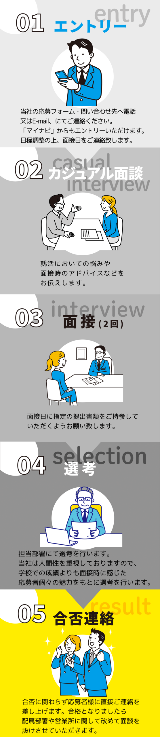 もちろん大切ですが、一番大切なことは、会社に入ってから自分が何を成すか、自分自身がどう成長していくかだと当社は考えます。