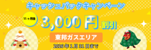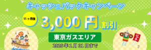 【都市ガス】キャッシュバックキャンペーン(大阪ガスエリア)