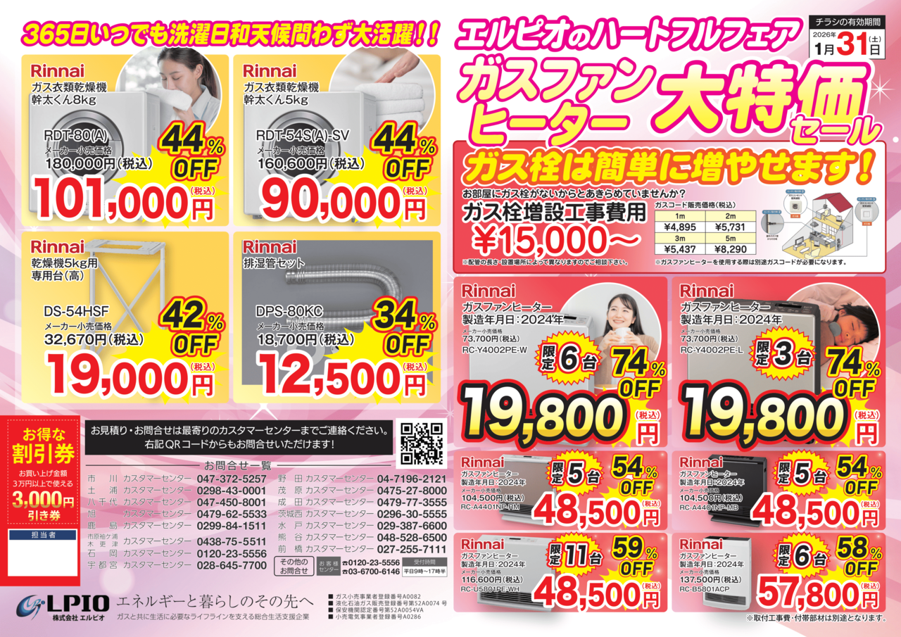 【期間限定】ガスファンヒーター大特価!ハートフルフェア開催中♪